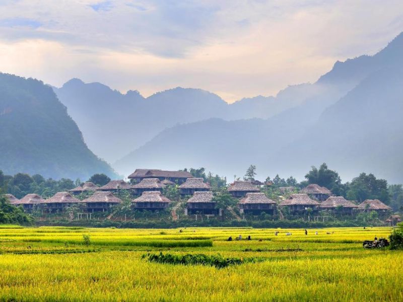 נשאיר מאחור את דלתת הנהר האדום ונטפס לעבר העמק השליו של מאי צ'או. ממעבר טונג קה, נפתחים נופים פנורמיים מרהיבים על שדות אורז בצבע אמרגד הממוסגרים בהרי גיר עוצמתיים. במאי צ'או, נגלה בתי כלונסאות מסורתיים ונפגוש את קהילת התאי הלבן. רכיבה על אופניים או הליכה בכפרים תחשוף בפניכם את חיי הכפר היומיומיים, עבודות היד ומסורות חקלאיות נצחיות. לינה במלון.